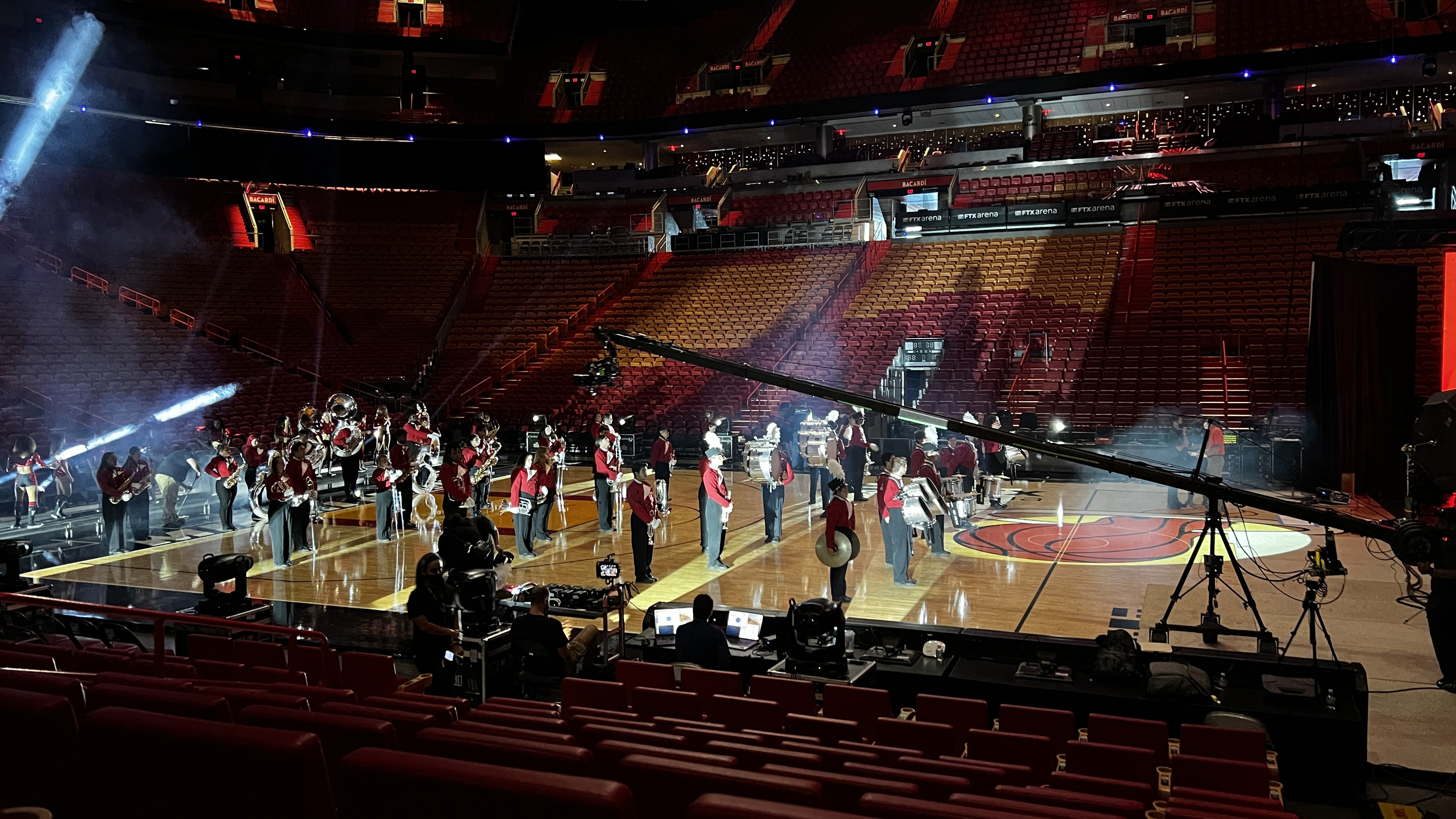 We built the technical and visual environment for the Miami Heat intro video shoot. We installed a large-format LED display to serve as a dynamic digital backdrop, enabling clean, high-impact visuals aligned with the Heat's branding. Our team executed the rigging, structural support, and designed the lighting setup to optimize camera capture for an incredible shoot.